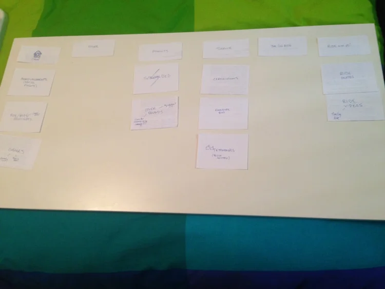 The first objective was to figure out what we wanted to keep from the current Cognition Cyclery site, and to have a way of sorting that out without being locked into a rigid content architecture. A simple spreadsheet did the job initially, but we also wanted to draw on our own ideas and best practices elsewhere on the web. A Google Sheet allowed us to see all the individual content items without locking them into their current design treatment or position in the site structure.